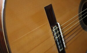そんなことはさておき…。アントニオ・マリン二重奏の話。動画をご覧いただければわかるけれど、長谷川さんのマリンは、いわゆるブーシェマリンではない。一方私のマリンは、2006年作の”モデロB”、すなわちブーシェモデルだ。いわゆる「ブーシェマリン」というのは、アントニオ・マリンがフランスの名工、ロベール・ブーシェのモデルを元に設計したタイプのギターを指す。アントニオ・マリンがブーシェに出会ったのは1970年代後半と言われていて、この邂逅によりマリンのギター造りは大きく変わったとされる。